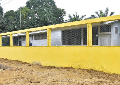 El proyecto incluyó trabajos de trazado y nivelación, excavación, estabilización con material de núcleo, relleno y compactado, construcción de cimiento corrido y sobrecimiento de bloque #6, instalación de soleras, repello, portones vehiculares y peatonales, colocación de malla ciclón y aplicación de pintura con base de aceite. Además, se realizaron pruebas de laboratorio para asegurar la calidad de los materiales empleados.
